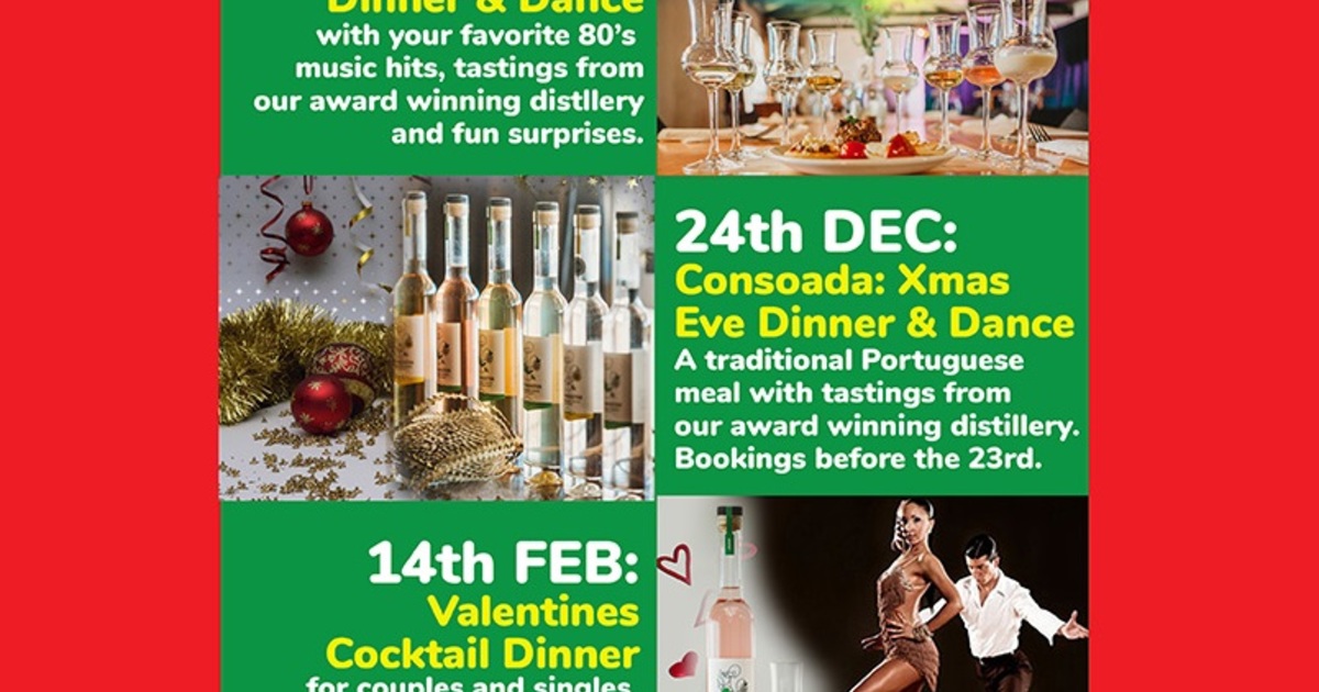 A traditional Portuguese meal with tastings from our award-winning distillery. Bookings before the 23rd.