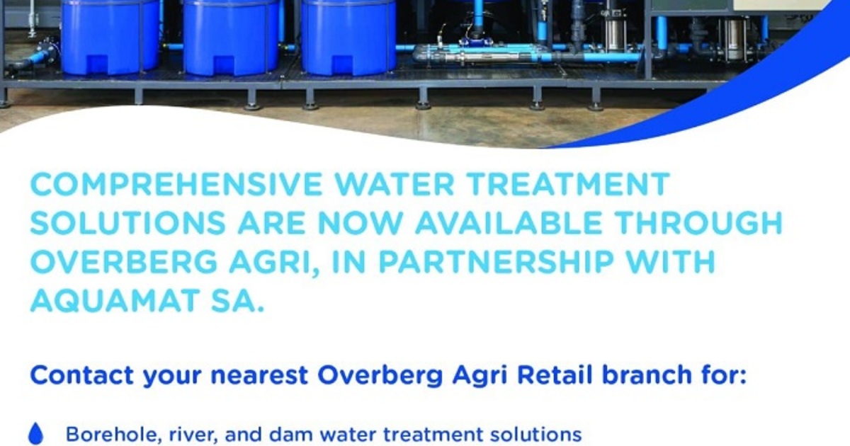 Comprehensive water treatment solutions are now available through Overberg Agri, in partnership with Aquamat SA.