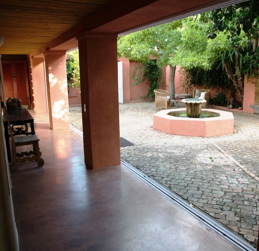 Michael Sutton, now retired aborad was one of South Africa's ;eading architects. He converted this historic Victorian cottage into modern easy living without losing any of its charm. Sliding doors from the passage, lounge, dining room and kitchen open onto central courtyard with fountain and mature trees.The Sutton Magic extends throughout this rare gem. Deep patios overlook water features and mountains, with a private pool courtyard. The original Victorian cottage offers rental income, as well as an additional guest suite with a seperate entrance. Main house: 2 bedrooms en suite with doors leading out onto a private outdoor shower.