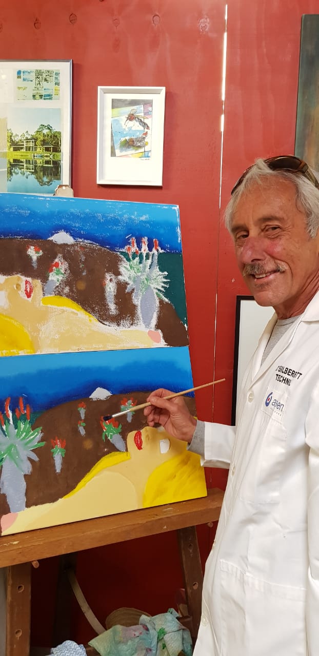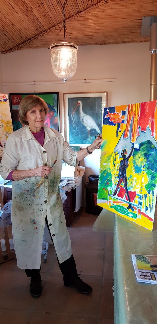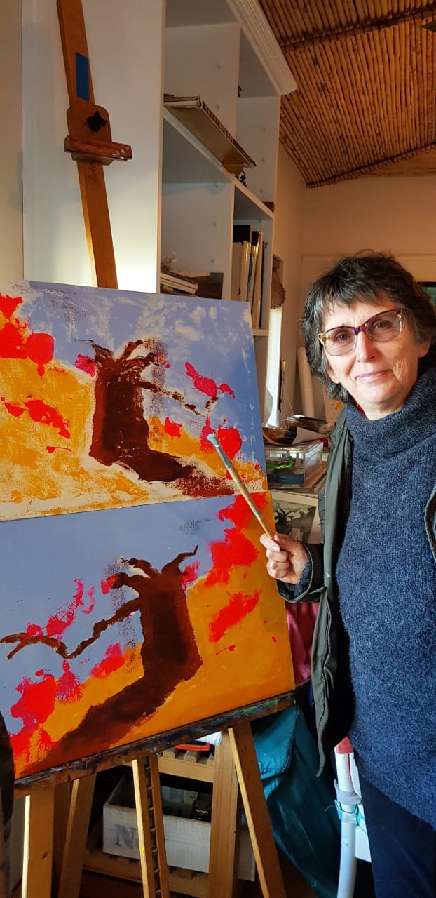 Artist Greg Kerr is teaching his course on Decalcomania from my home in Stanford. Decalcomania is the transferring of one image onto another. We are using my studio in Caledon Street which opens into the garage for space. Very chilly weather means log fire, coffee and lunch visits to local restaurants for a bite to eat!