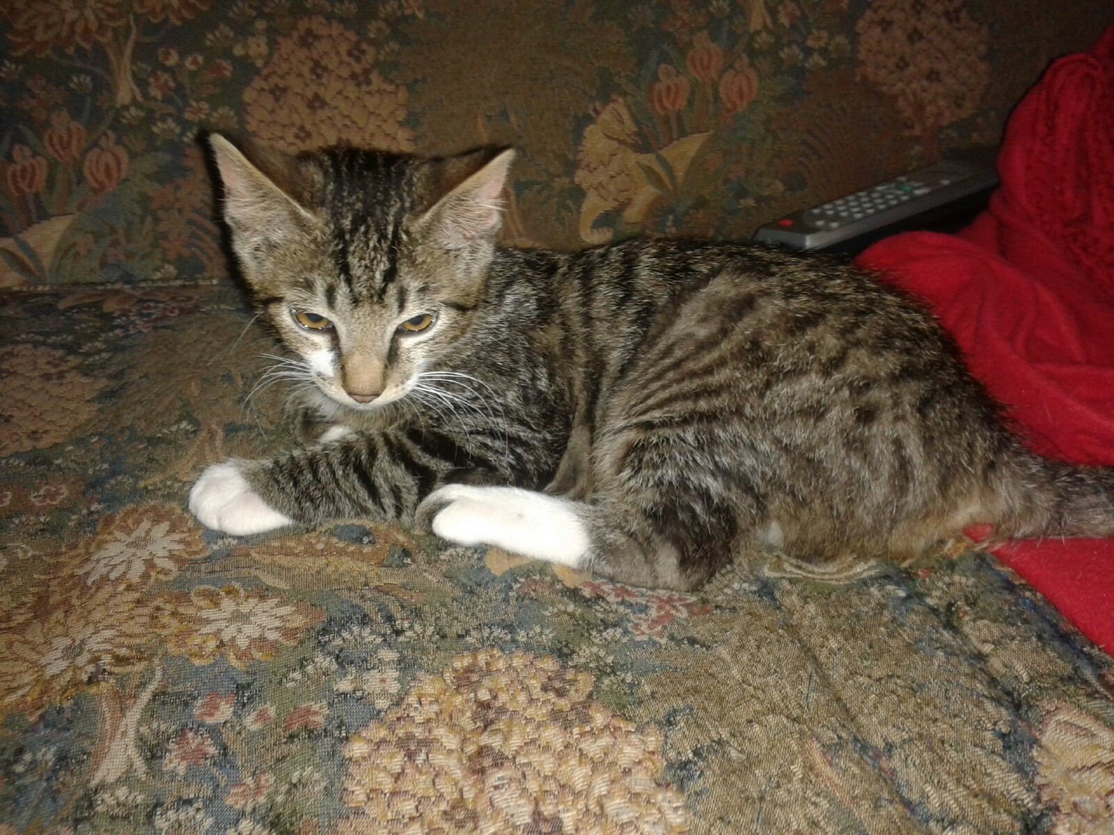 About three months of age and we are at the Stanford Animal Welfare and up for adoption. Unforeseen circumstances led to us being here and now we are long for our forever homes. We are named Miles Bobby and Charlie, we are two male and one female kittens. We are very active, we love to spread love and love other animals and babies. We have been deformed and got all our injections.