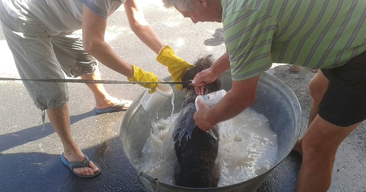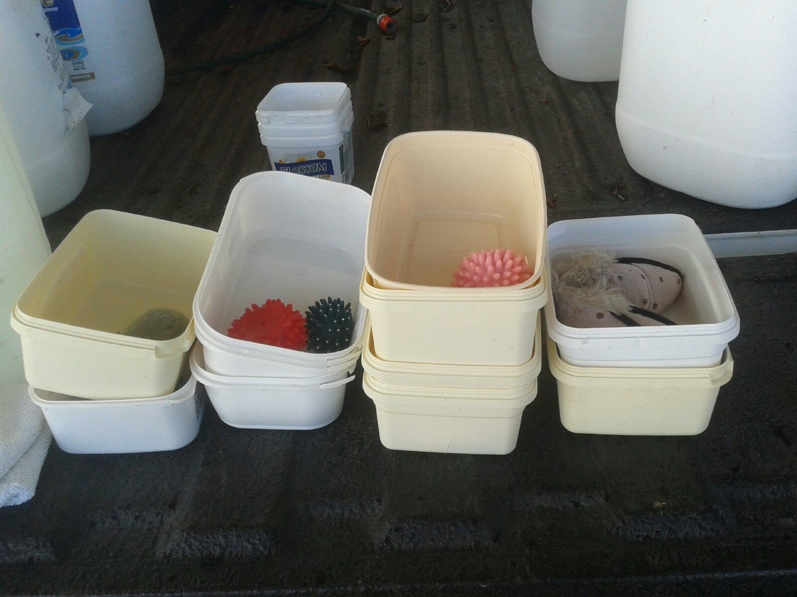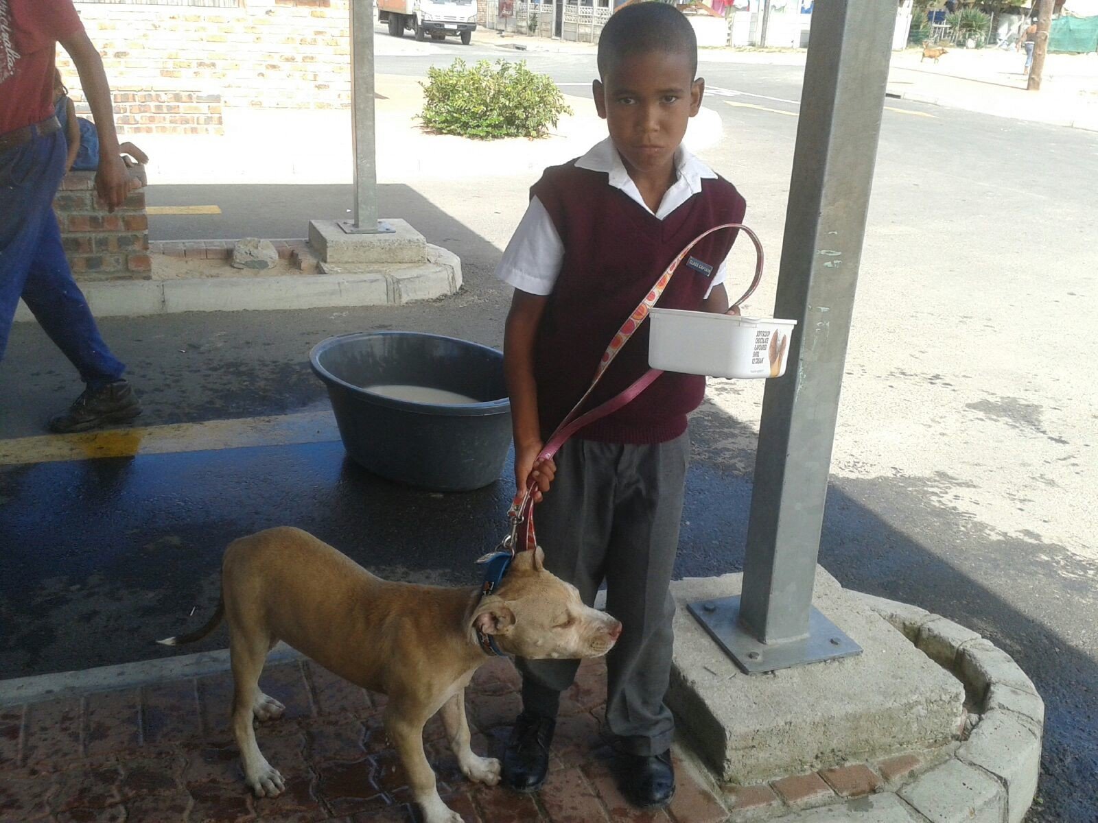 The field workers of Stanford Animal Welfare at it again with the dip dance. Giving out toys and containers for food and water..