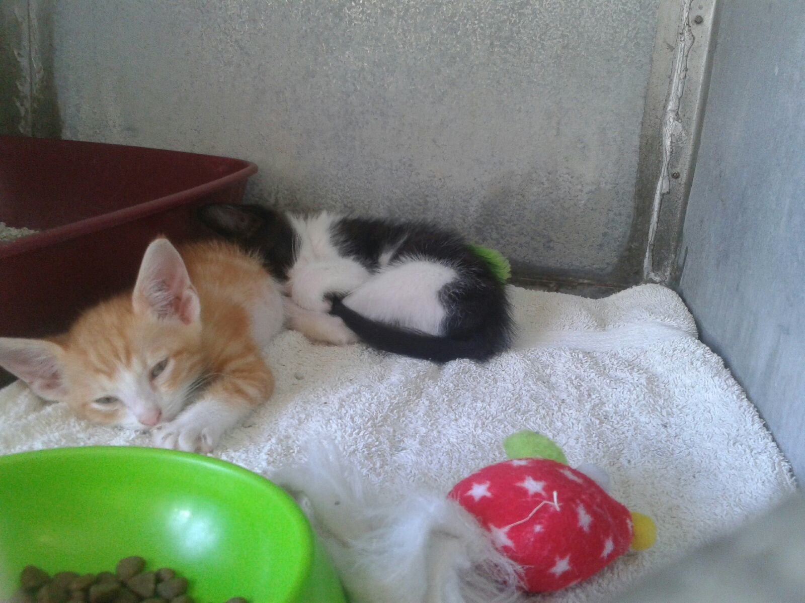 We are three adorable kitties up for adoption at the Stanford Animal Welfare Society. Ginger and the black and white are males and the tortoiseshell are female. All of us are only three months old, de-wormed and vaccinated.