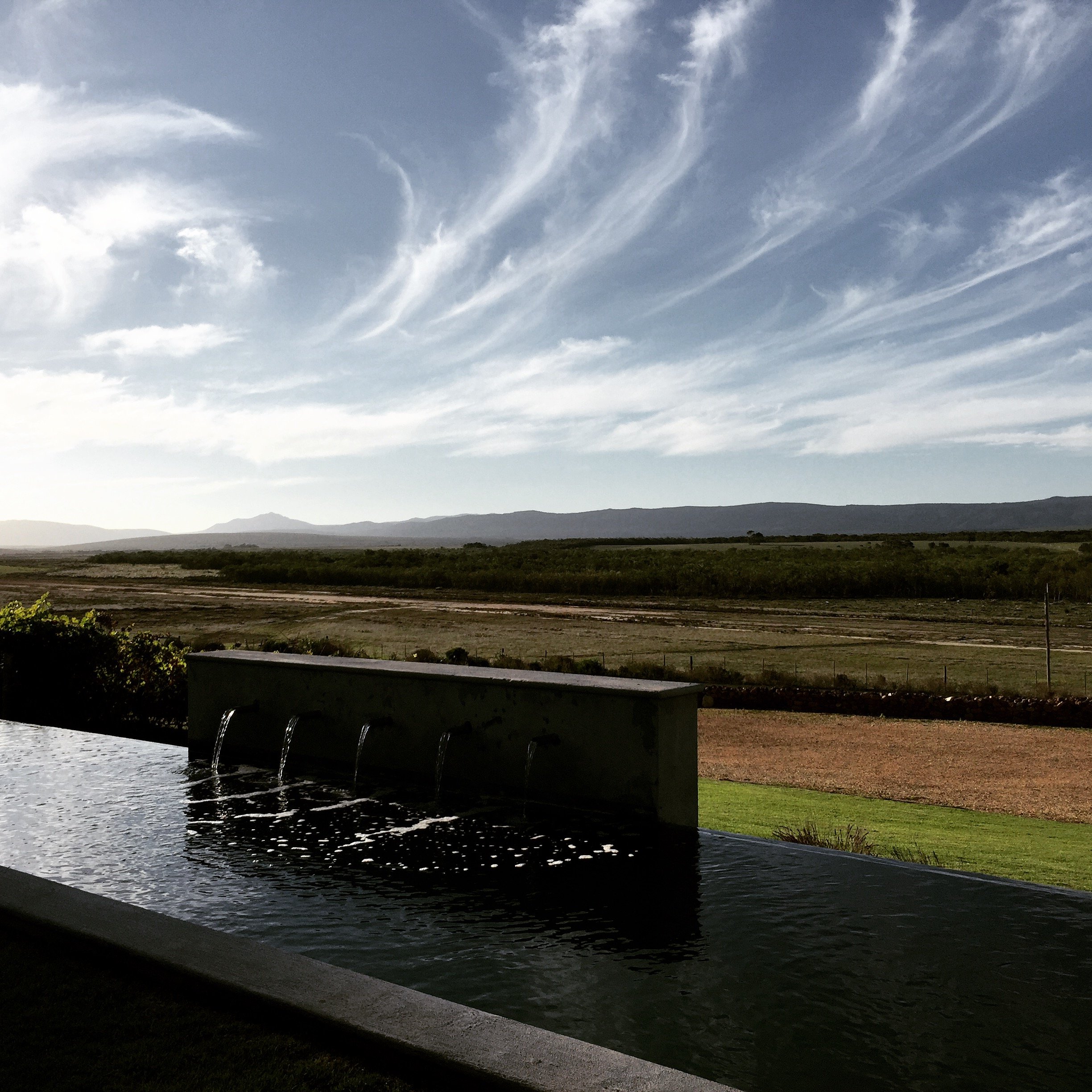 Next stop - the cellars of Black Oystercatcher. The restaurant and rim pool overlook the valley beyond and the wines live up to the promise of elegance and class.
