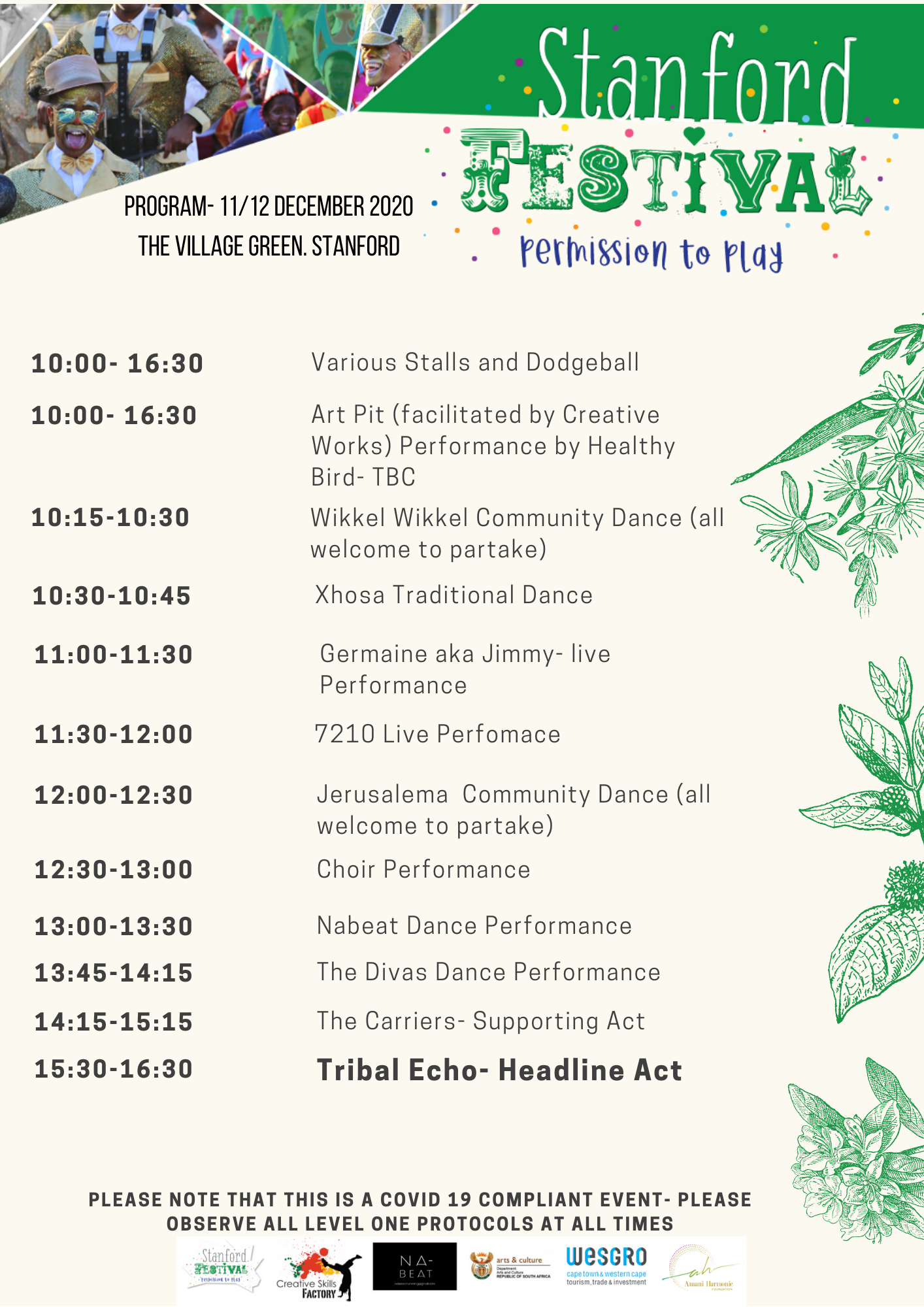 The festival celebrates Stanford, its people and its nature. It weaves a social fabric of wonder, excitement, hope and fun. Be it visual art, performance art, music, dance or spoken word, this festival creates a platform for locals to express themselves artistically and invites established artists to mentor and perform, making a unique, interactive and inclusive community arts festival.