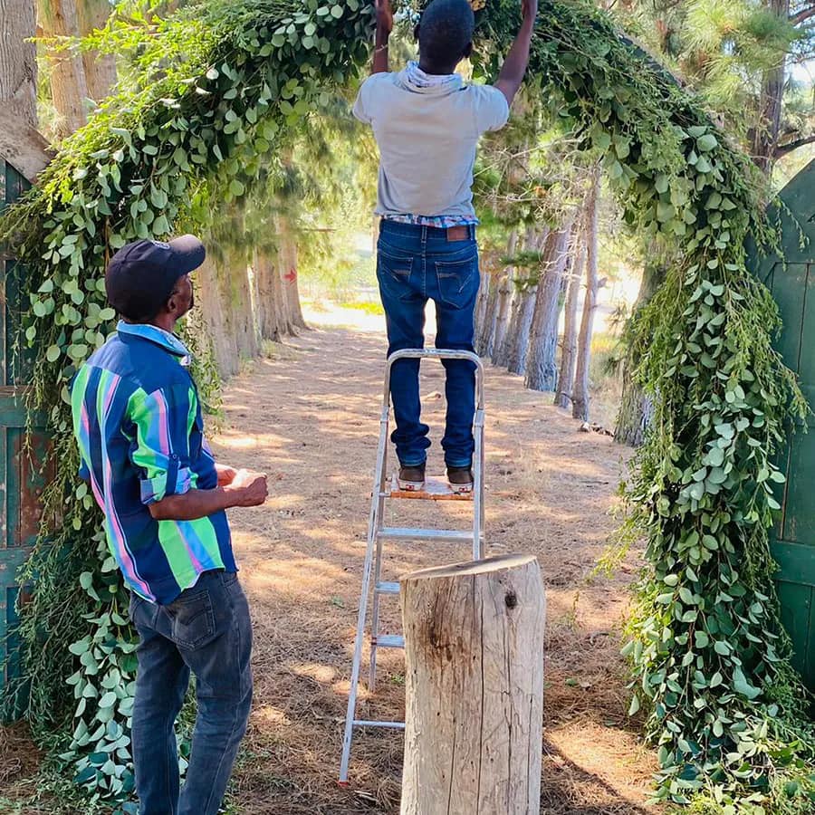 So proud to introduce you to Petro, our March employee of the month at Stanford Hills. Flowers are a big part of what we do on the farm, and Petro takes such pride in making up the bouquets we sell at the wine shop as well as doing the flowers for our functions. The picture of him on the ladder is taken 10 minutes before the bride was to walk down the aisle, when a last minute check revealed that a troop of baboons had destroyed all his mornings hard work. Petro dealt with the emergency like such a pro, guests were none the wiser. Thank you for your passion, and loyalty to the Stanford Hills team.