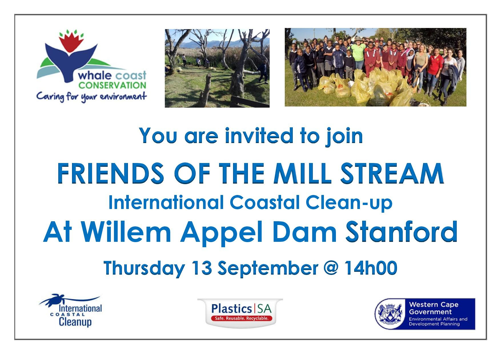 The friends of the Mill Stream invites you to a clean-up session at the Willem Appel Dam.