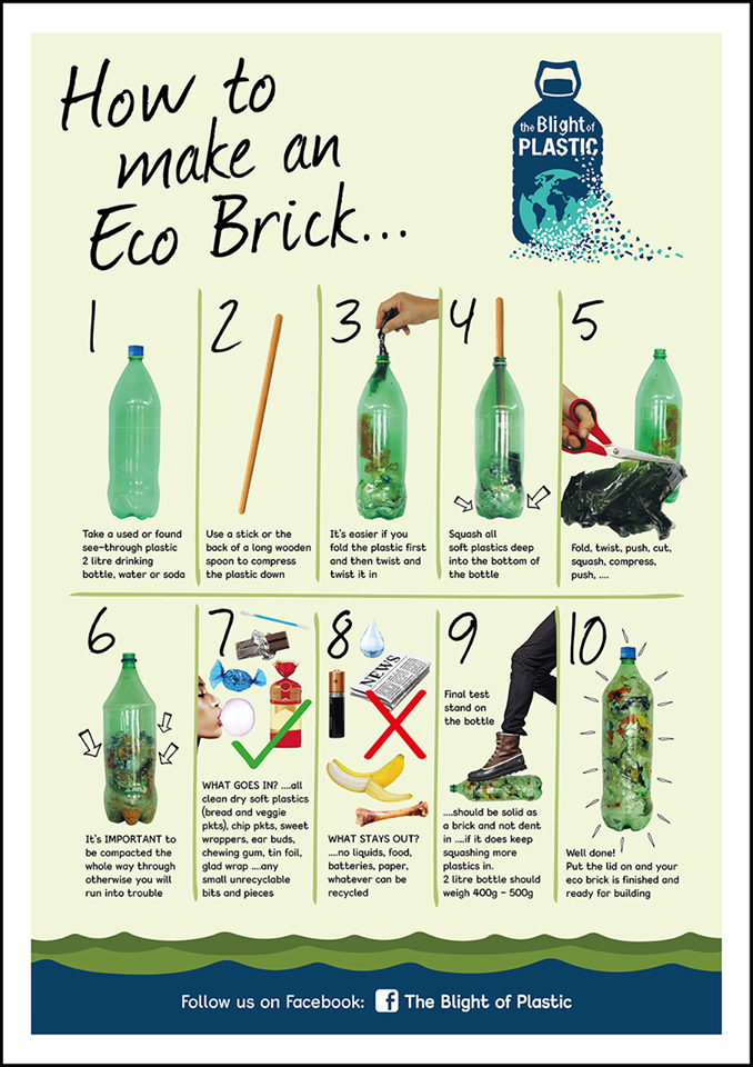 In a drive for Stanford to reduce its rubbish, a small project has been initiated by locals to collect plastic 2 litre bottles that have been stuffed with plastic. These filled bottles make durable building bricks which can be used to make benches and chairs which can be placed in parks, at schools, etc. Please fill a plastic bottle carefully with plastic packets and wrapping, pressing all in as deeply as possible with a stick. These complete 'bricks' can be dropped at Stanford Tourism and Business. We need about 50 bottle bricks for the first prototype bench. For more information, please call Tracy 073 687 3215
