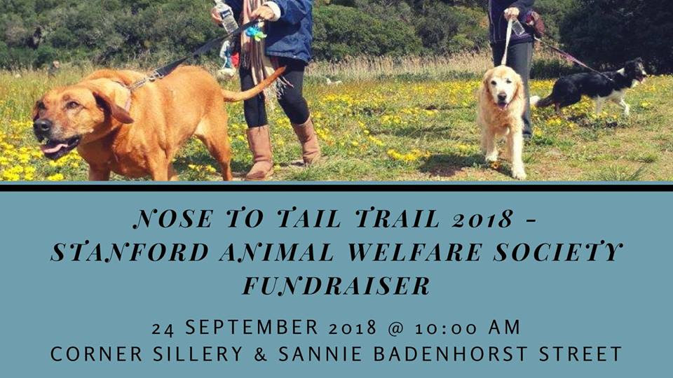 Walk your dog on a leash around scenic Stanford and raise funds for Stanford Animal Welfare Society. R30 for dogs, owner’s free. Tickets will be on sale at the Stanford Vet Clinic from 1 September.