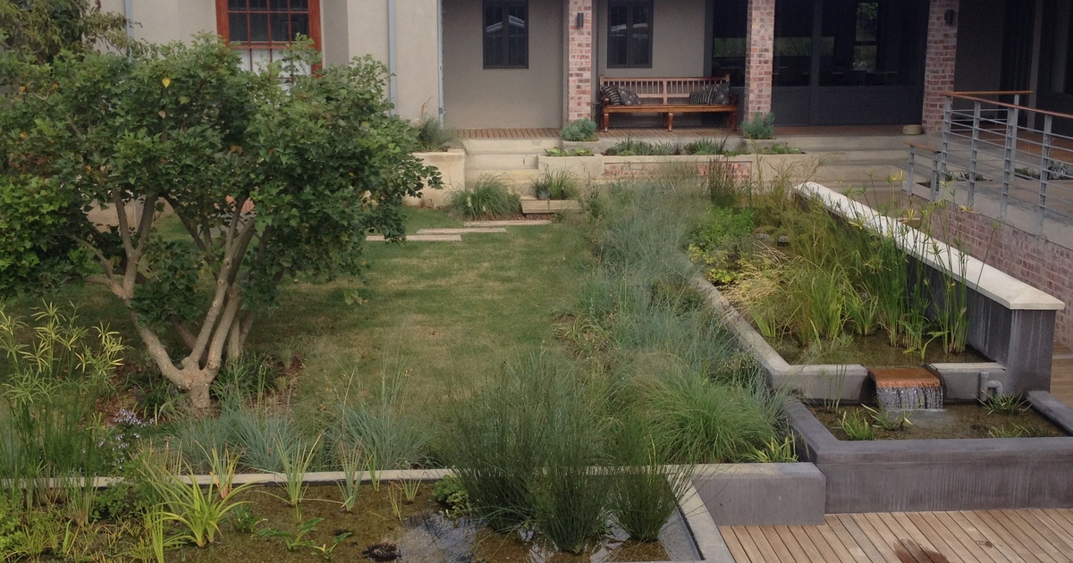 The design of the house incorporated many energy-saving details including using polystyrene blocks for the walls, suspended floors off the ground, double glazing, solar geyser, insulated ceilings, and an eco pool.