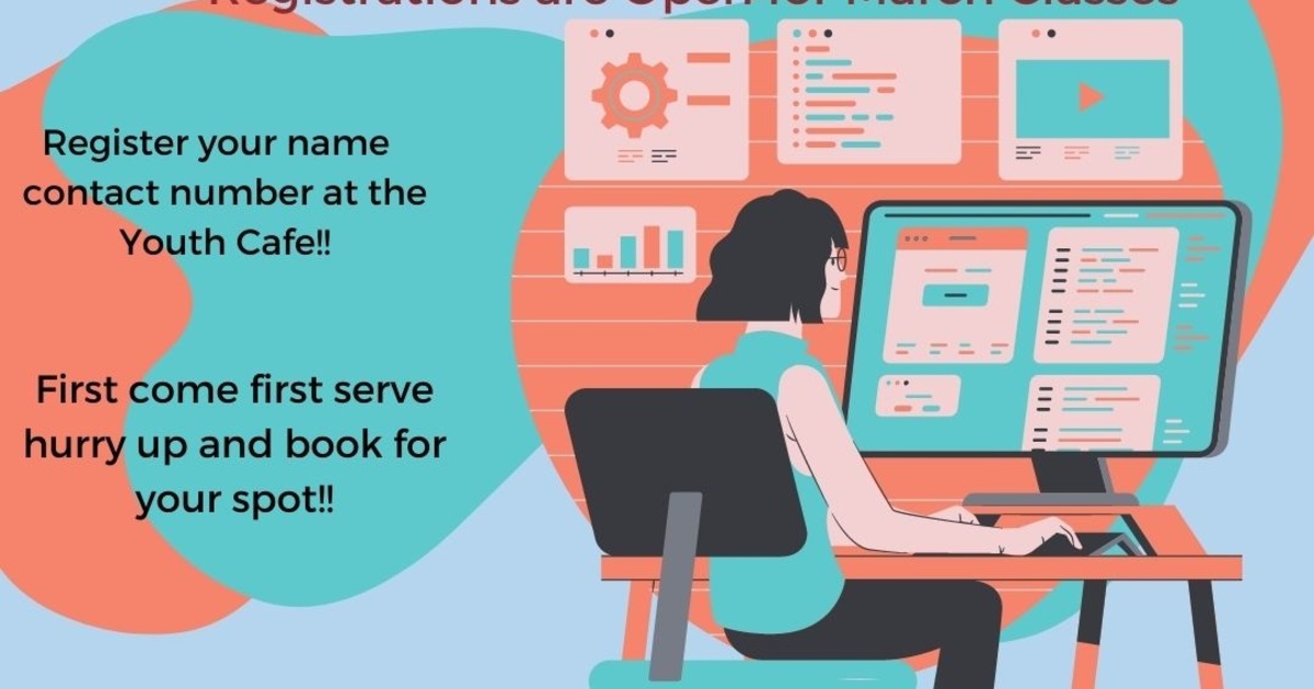 If you want to know more about computers, you can come to the Youth Café for registration.