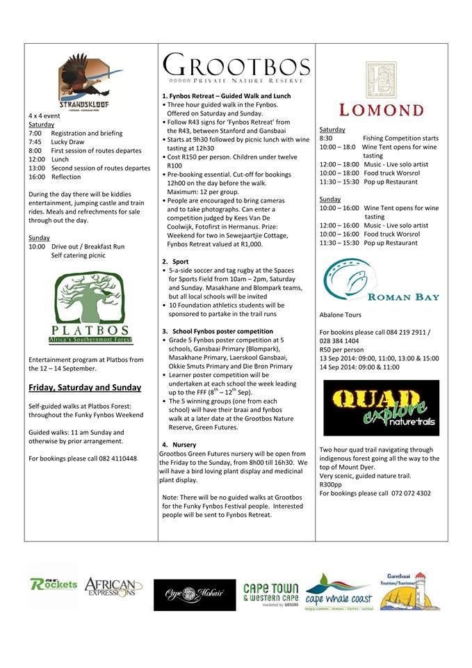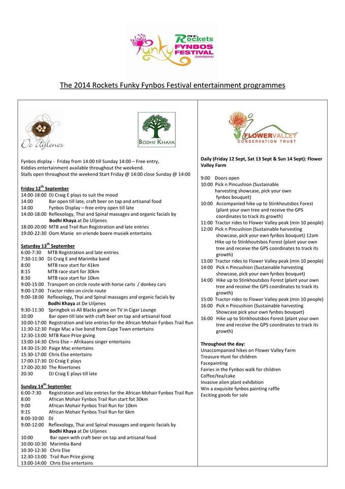 See here for more information on the Funky Fynbos Festival, the MTB Races and the Full Schedule of the Festival.