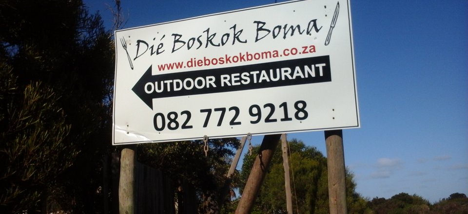 Welcome to Dié Boskok Boma at the Hangklip Hotel at the foot of the Hangklip Mountains. This eatery is a semi-open air boma restaurant that is great for any occasion. Bringing you delicious bush cuisine, the owners invite you to join them for a eating experience like no other. Enjoy dishes straight from the fire and a hearty atmosphere.