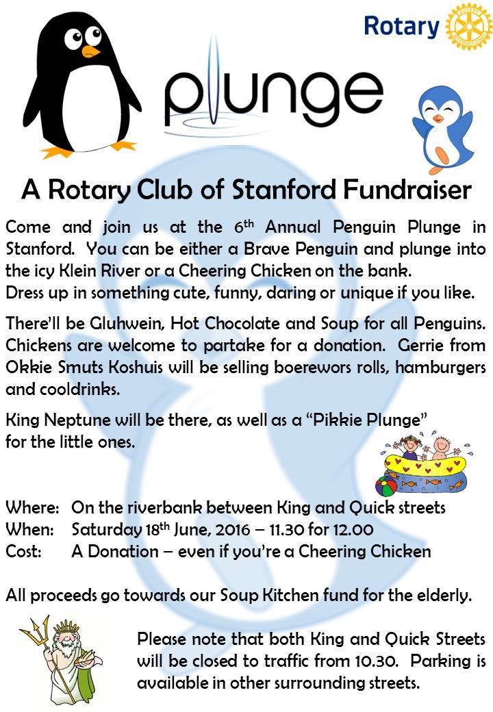 The event is organised by Rotary to raise funds for their soup kitchens which feed the needy in the Stanford area. Are you a chicken or a penguin? Support from the banks and take the plunge like a real penguin. Steaming gluwein will be served to all penguins. All donations will be gratefully accepted. Go on, challenge your friends, and join in this fun tradition in Stanford.