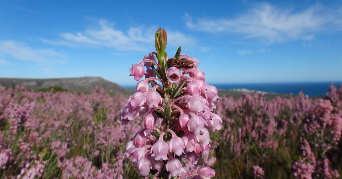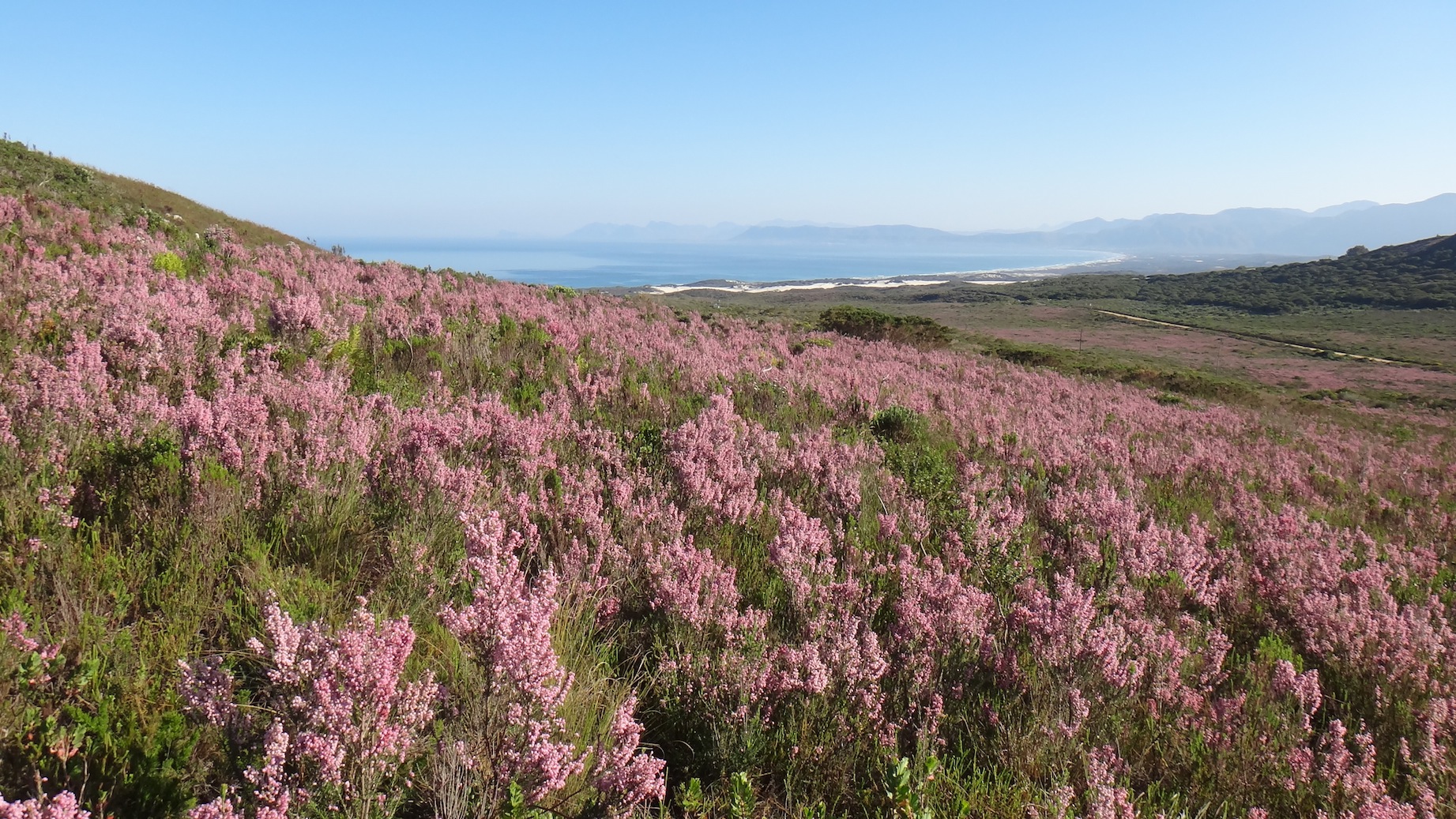 One often see mountain slopes covered in a specific colour at certain times of the year, these are in all probability mostly also Ericas, different species though, but this show at Gansbaai is probably unparalleled due to the fact that it is so accessible, everyone can walk to a plant and admire it, photograph it, smell it and just love it. This one of the Cape Floral Kingdom’s most user-friendly displays, a perfect choice to teach children about the value and diversity of our floral heritage.