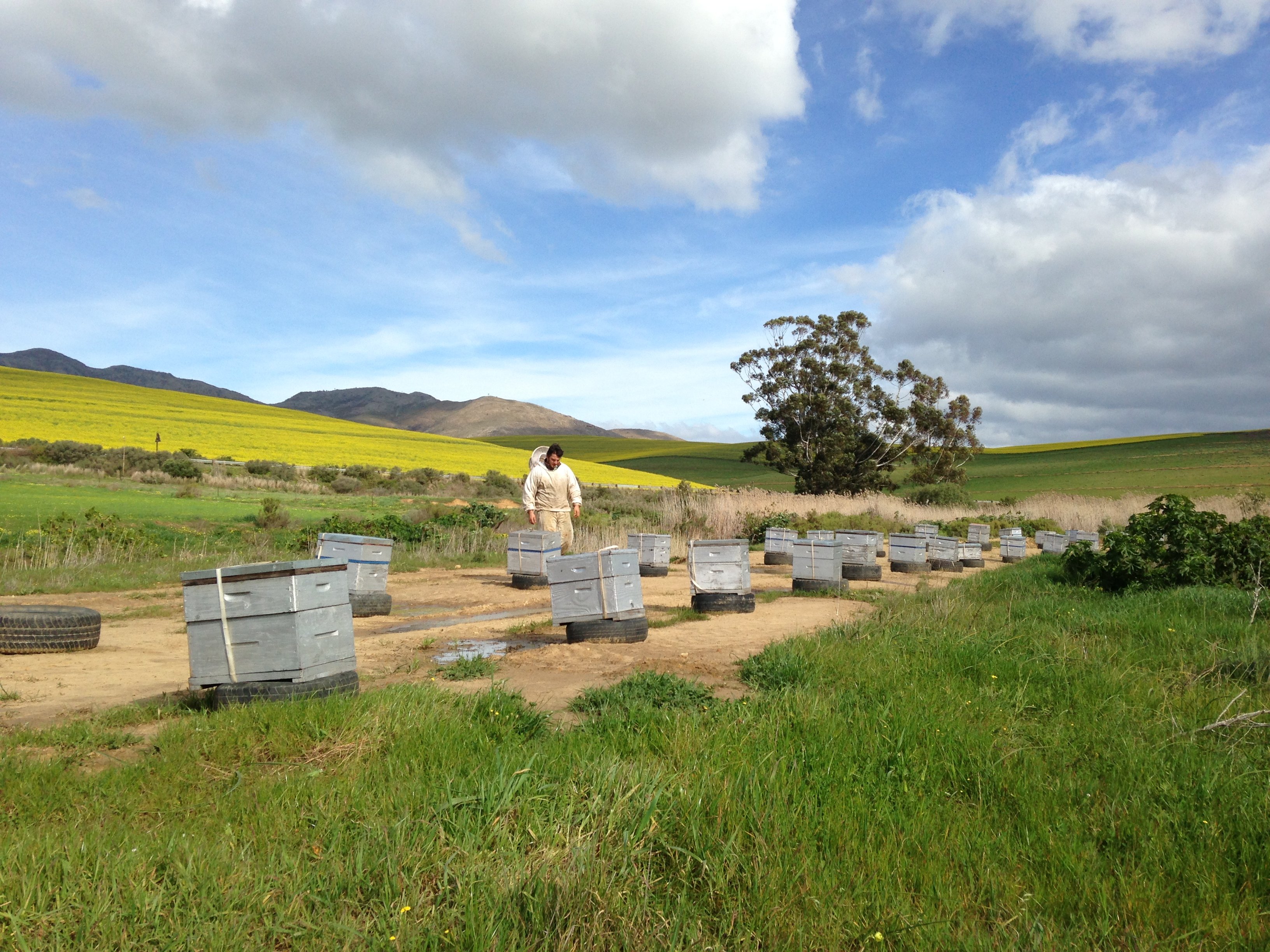 Canola fields with bees by Overberg Honey Co.