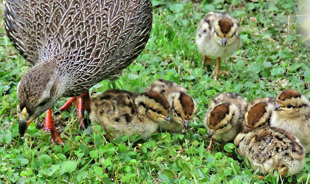 Cape Spurfowl (Kaapse Fisant) chicks in the garden at Palmers Place