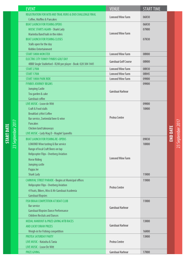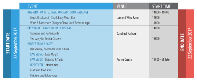 This year the event will span over the weekend of 22 - 24 September 2017 and include three main venues. The Protea Centre along the Main Road of Gansbaai will have food and craft stalls, freshly brewed coffee, live music, fresh fish & chips as well as being the location of the Funky Fynbos Street Parade.