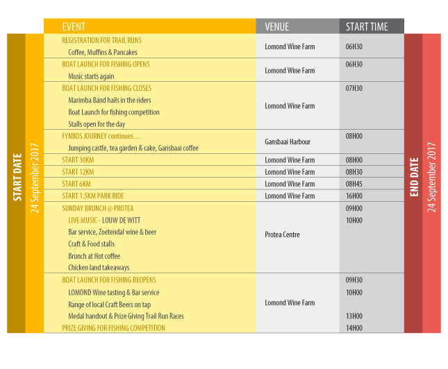 Heading out towards B’bos, you’ll find the third and final main venue of the Festival, the beautiful Lomond Wine Estate. This will be the host of all the sports events of this year’s event, including the Funky Fynbos MTB Race, the Funky Fynbos Trail Run and the Funky Fynbos Bass Challenge. This year there is also the added Funky Fynbos ‘Ironman’ and ‘Ironwoman’ Duo Challenge where participants can take part in both the trail run and mountain biking race to really test their endurance. Throughout the weekend Lomond will also feature live music, wine tasting, great food, crafts stalls and kids entertainment to complement the stunning vistas of the farm.