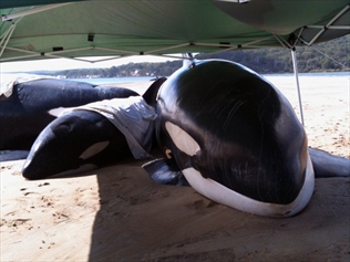 A small group of 5 Killer Whales, also known as Orcas, was spotted near Fraser Island as they thrashed about trying to free themselves. Rangers and officers attempted to keep the animals comfortable with shade and keeping them wet as they waited for the late afternoon tide to rise.Â