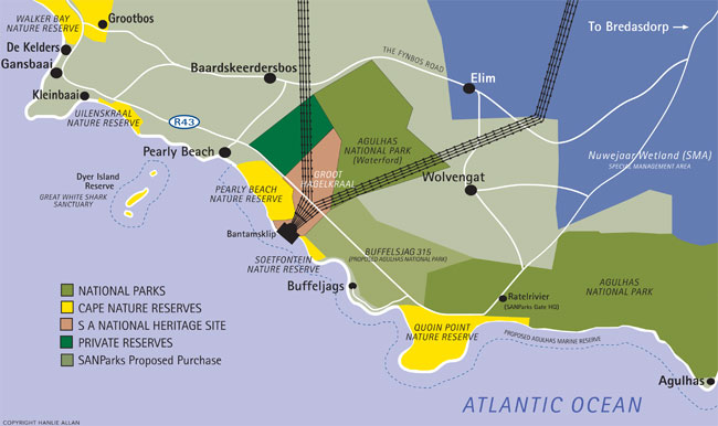 Bantamsklip is located on the south western coast of the Overberg and is situated on the Groot Hagelkraal farm which is registered as a Private Nature Reserve and a South African Nature Foundation National Heritage Site. Bantamsklip holds 22 Red Data list species of which 6 are entirely restricted to the farm. Moreover, the Bantamsklip coastline is considered to hold the highest level of Marine endemism found in Southern Africa. The location is also adjacent to the Dyer Island Nature Reserve and Dyer Island Marine Sanctuary.